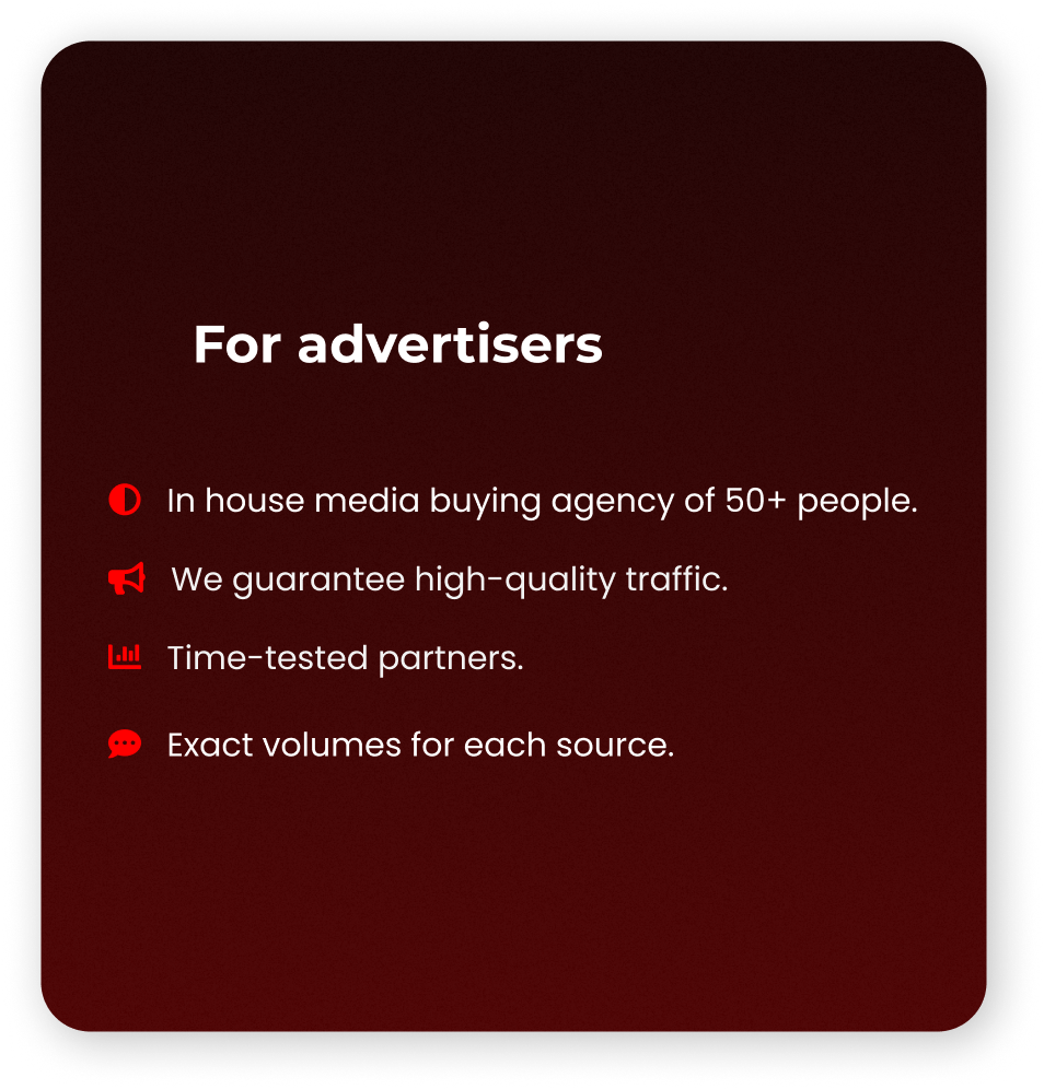 The best traffic for advertisers is from the mediabuying team and external partners.